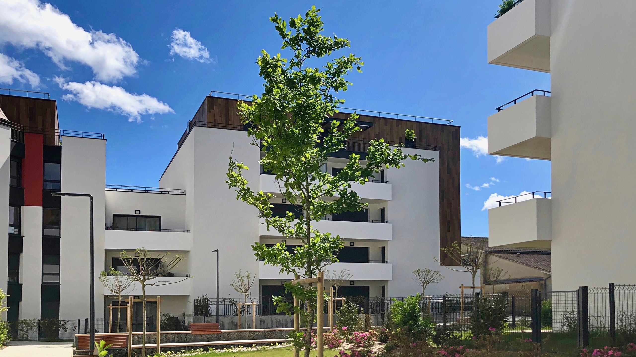 Sur l’ancien site du campus de Bissy, à la lisière d’un parc remarquable et en bordure de la voie pénétrante Ouest, le projet développe un ensemble de cours intérieures offrant intimité et convivialité aux habitants.